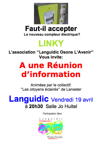 Faut-il accepter Le nouveau compteur électrique? L’association " Languidic Osons L’Avenir " Vous invite à une Réunion d’information