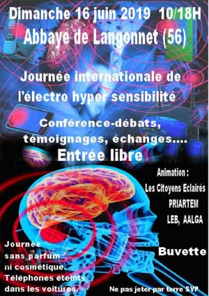 -Rencontre/goûter électrohypersensibles et sympathisants le Mardi 30 avril 2019 à 14H30 dans la forêt de Pont Calleck ; se garer sur le parking de l'auberge de Pont Calleck, le rv est à 10m au dessus, à l'embranchement de la route d'Inguiniel, c'est le démarrage des sentiers de randonnée, derrière le petit pont. Nous avons invité les instances gouvernementales de la santé, et la presse bien sûr.